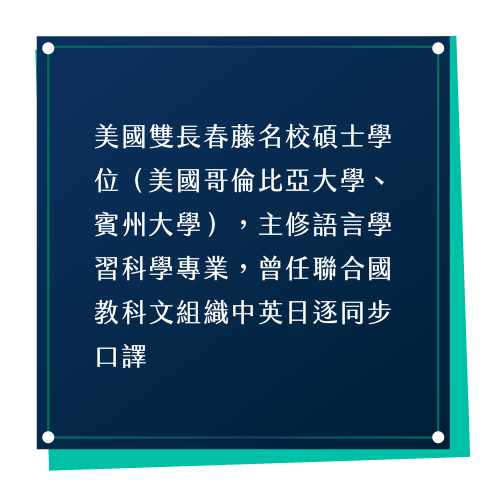 ► 擁有美國哥倫比亞大學、賓州大學雙常春藤名校的語言學習科學背景,致力於以第二語言習得理論為基礎