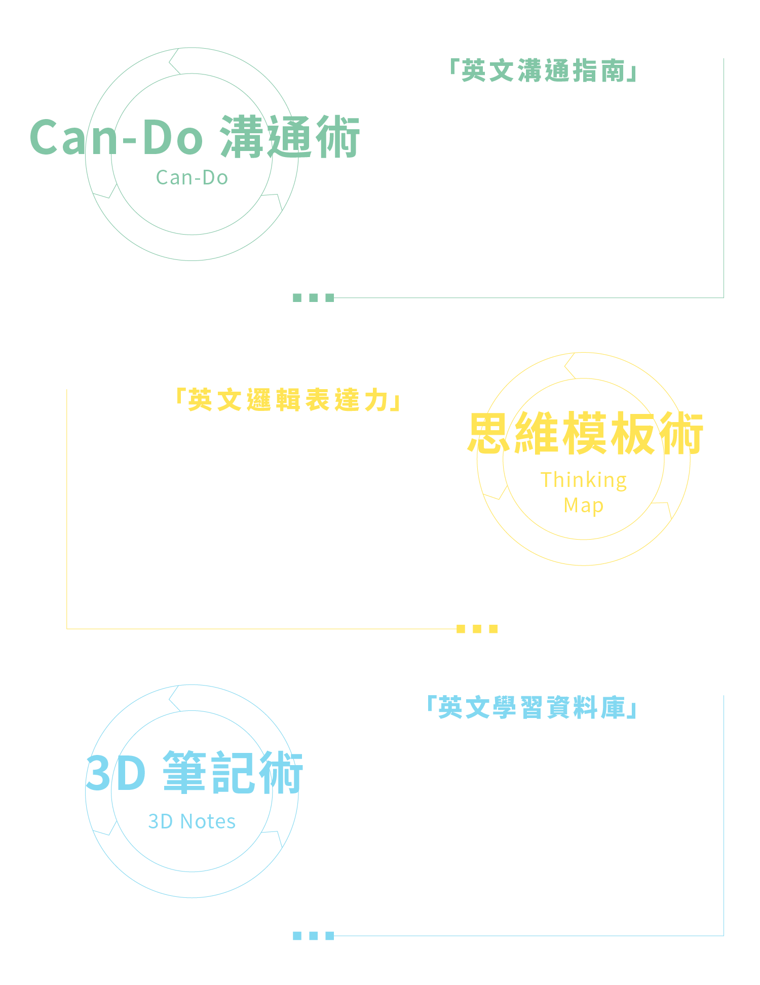 《Can- Do 英文溝通術》、《英文思維模板術》、《3D 英文筆記術》,三大重磅課程,帶你征服英文「沅」宇宙!