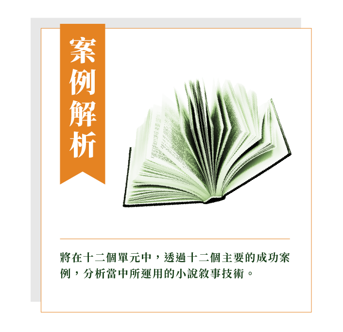 現在,這套技術還被廣泛地使用在電影、戲劇、動畫、漫畫、遊戲、廣告、MV⋯⋯等文本當中。課程裡,我們將討論一系列流行作品當中所運用到的小說敘事技術。