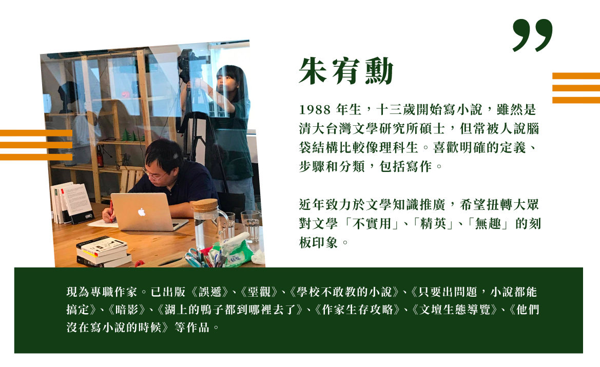 朱宥勳曾經擔任包含台積電青年文學獎、台灣歷史小說獎、
