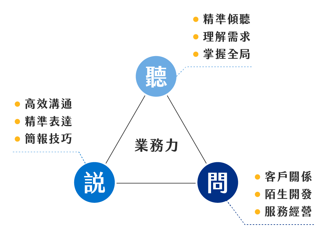 一個業務的養成,從打穩紮實的溝通能力開始,懂聽、懂說、懂問可謂業務核心基本功,掌握三大技巧,學會聆聽需求、滿足需求、以及創造需求,打破無法成交的窘境。